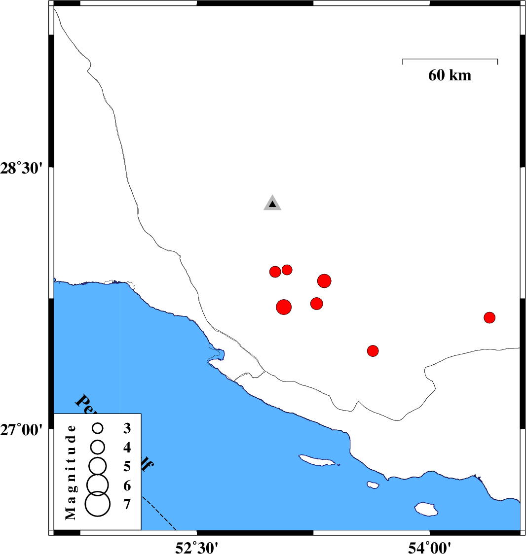 2020/08/25 | 14:14:53.4 | 18:44:53.4 | 27.914 | 53.08 | 12 | ML:3 | Fars Province, 45 km North-East of Mehr | ||