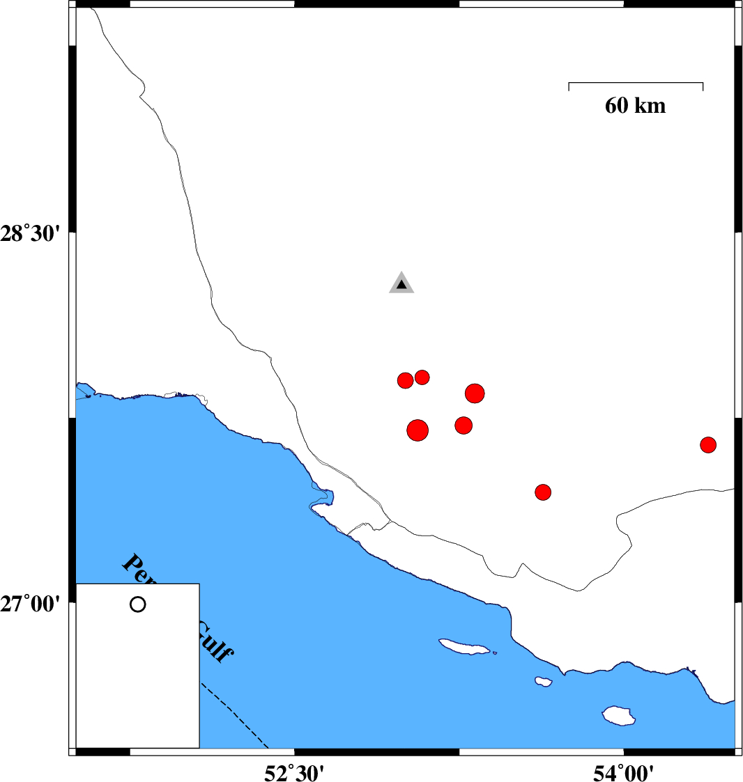 2020/08/25 04:41:20.7 09:11:20.7 27.44853.63212 ML:3.2 Fars Province, 48 km North-East of Lamerd