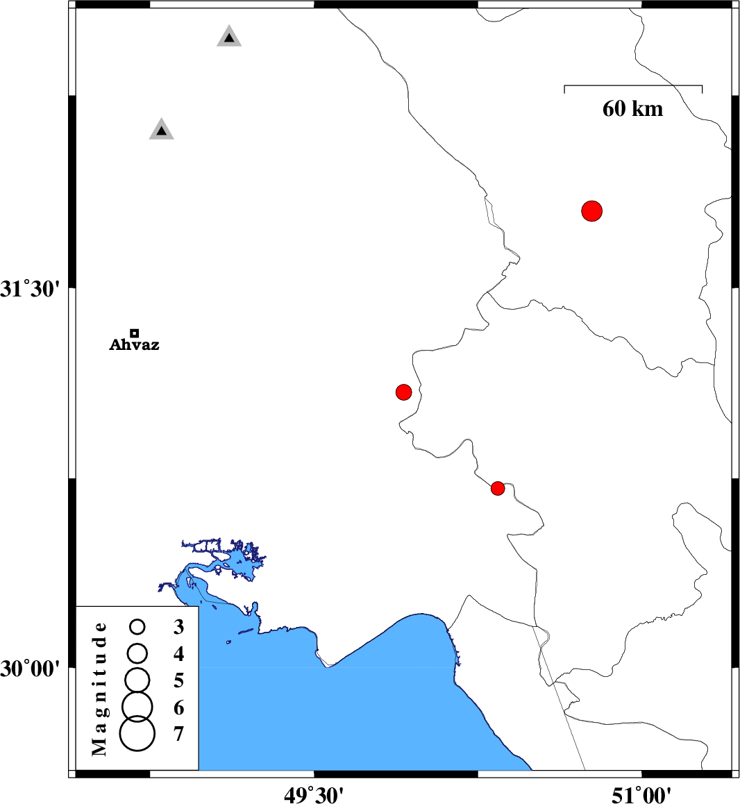 2011/08/04 | 01:54:37.6 | 06:24:37.6 | 31.09 | 49.91 | 14 | ML:3.2 | Khoozestan Province, 47 km South of Bagh Malek | ||