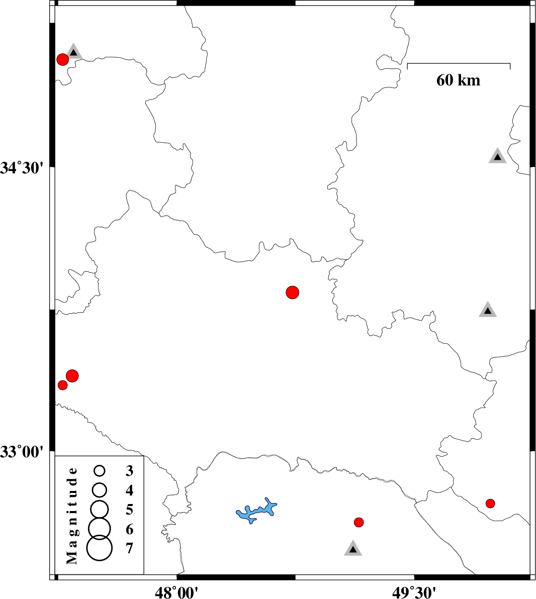 2011/07/17 | 11:59:04.0 | 16:29:04.0 | 33.4 | 47.34 | 16 | ML:3.5 | Lorestan Province, 30 km North of Darreh Shahr |