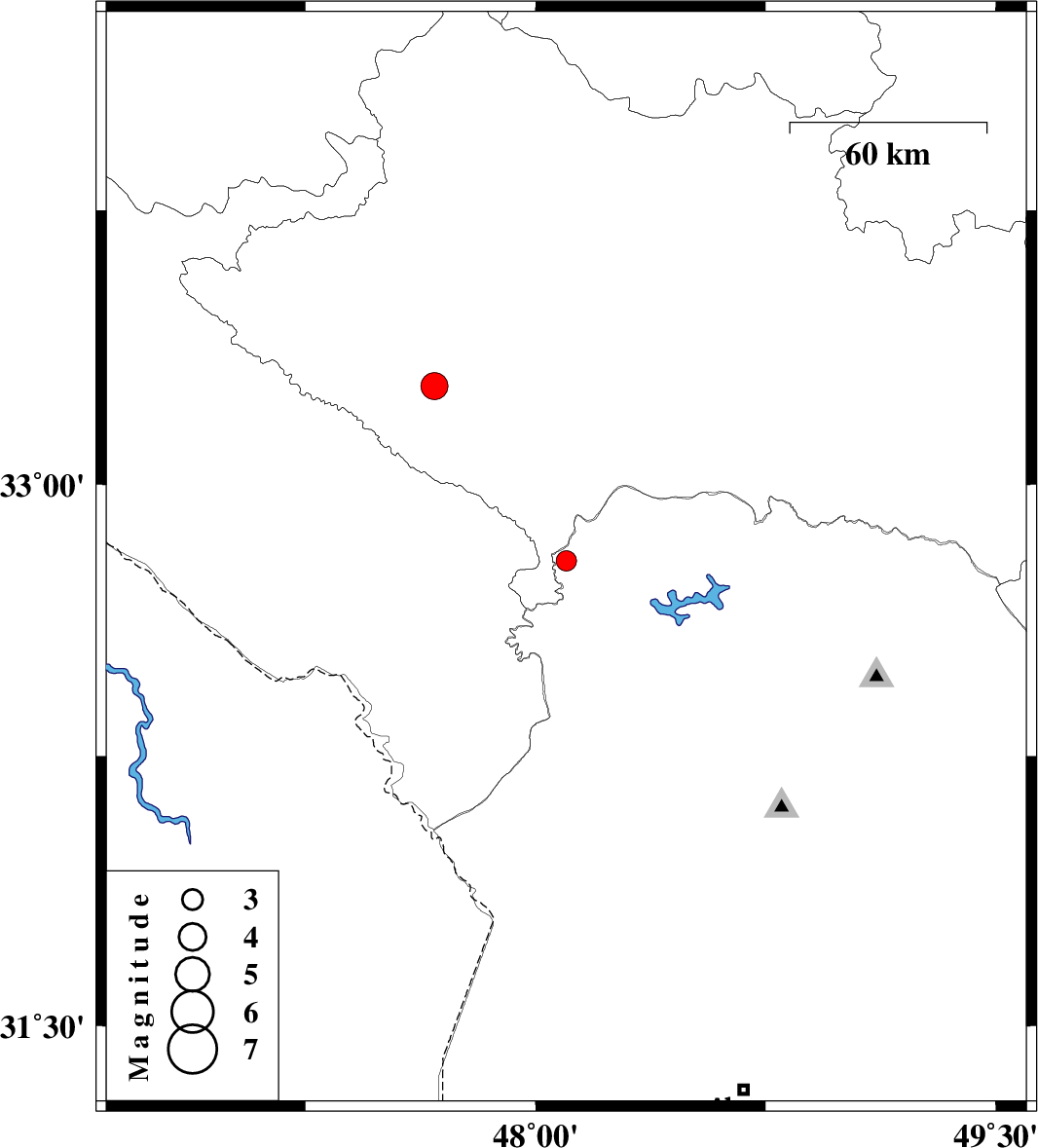 2011/09/02 | 02:08:02.4 | 06:38:02.4 | 32.79 | 48.1 | 32 | ML:2.9 | Khoozestan Province, 44 km North-West of Andimeshk |