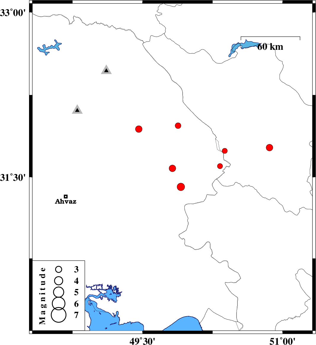 2011/09/14 | 15:29:55.4 | 19:59:55.4 | 31.41 | 49.91 | 18 | ML:3.7 | Khoozestan Province, 12 km South of Bagh Malek | ||