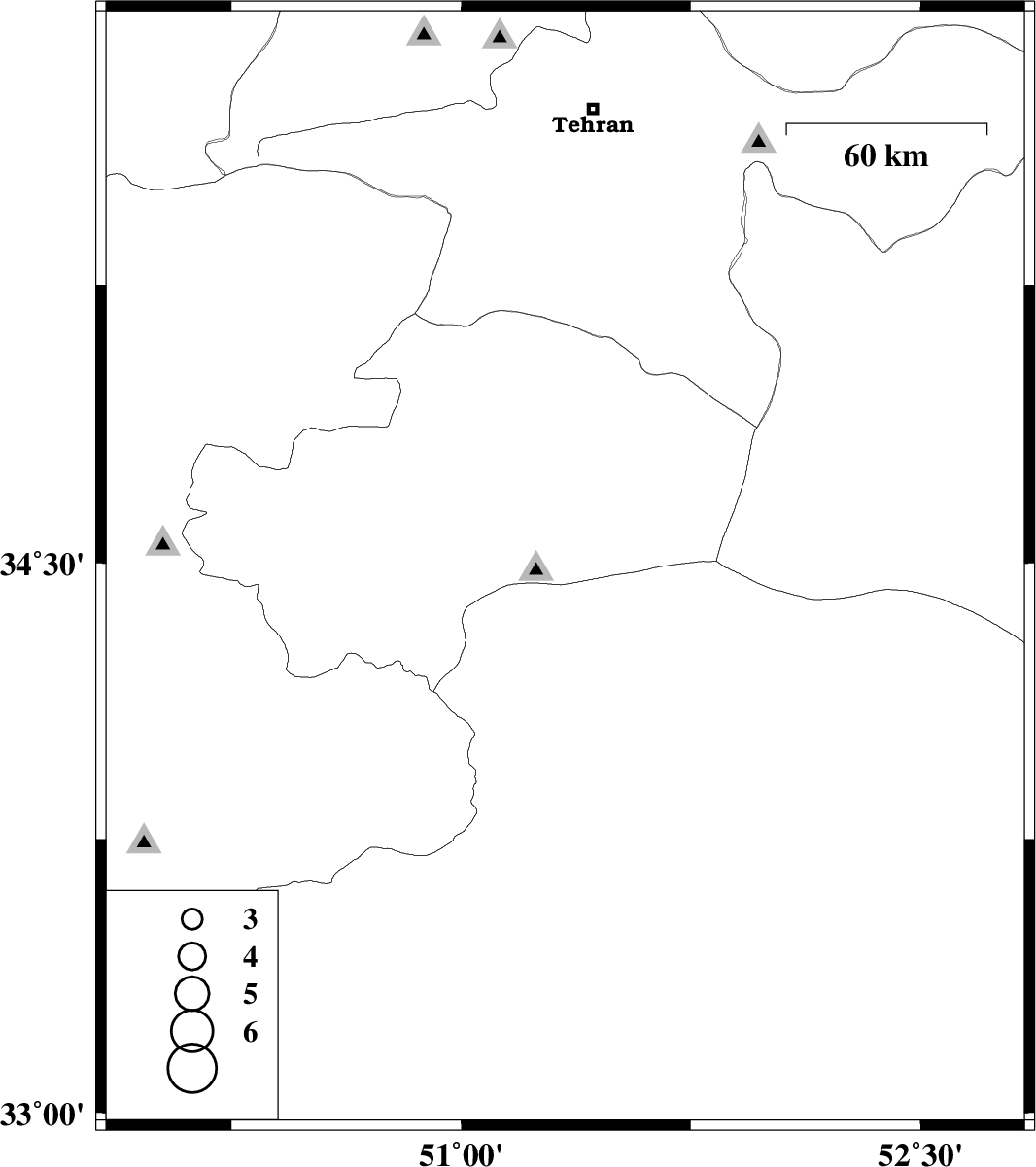 Map Region : lat:32.98-35.98 lon:49.84-52.84 Map's coordinate is invalid North ** West ** East ** South ** Show Cities Province Center None Province And Township Center Show Foreign Cities Yes No Show Fault Mechanism Yes No Show Province Boundaries Yes No Show Stations No Yes With Name Yes Without Name Map Title Invalid Title Get Ascii Data in Format : List Seisan GSE2.0 Prel. Rep.DateTime(UTC)Time(Local)Lat.Lon.DepthMag.RegionWaveform 2011/10/22 17:47:07.8 21:17:07.8 34.4851.346 ML:2.7 Qom Province, 48 km North-West of Aran va bidgol