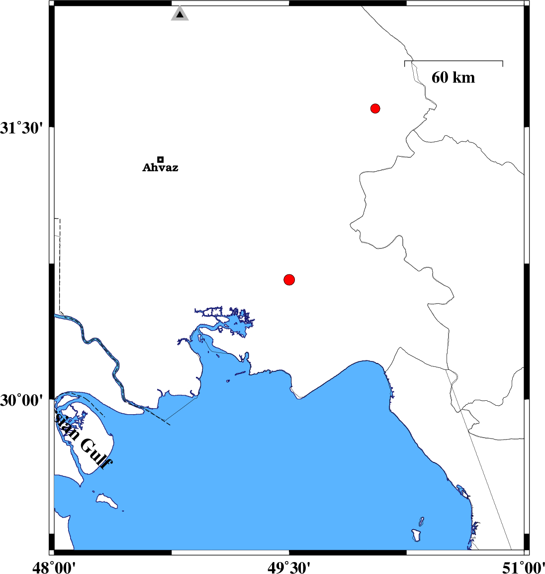 2011/10/24 | 06:56:11.6 | 10:26:11.6 | 30.66 | 49.5 | 36 | ML:3.1 | Khoozestan Province, 24 km South-West of Omidiyeh | ||