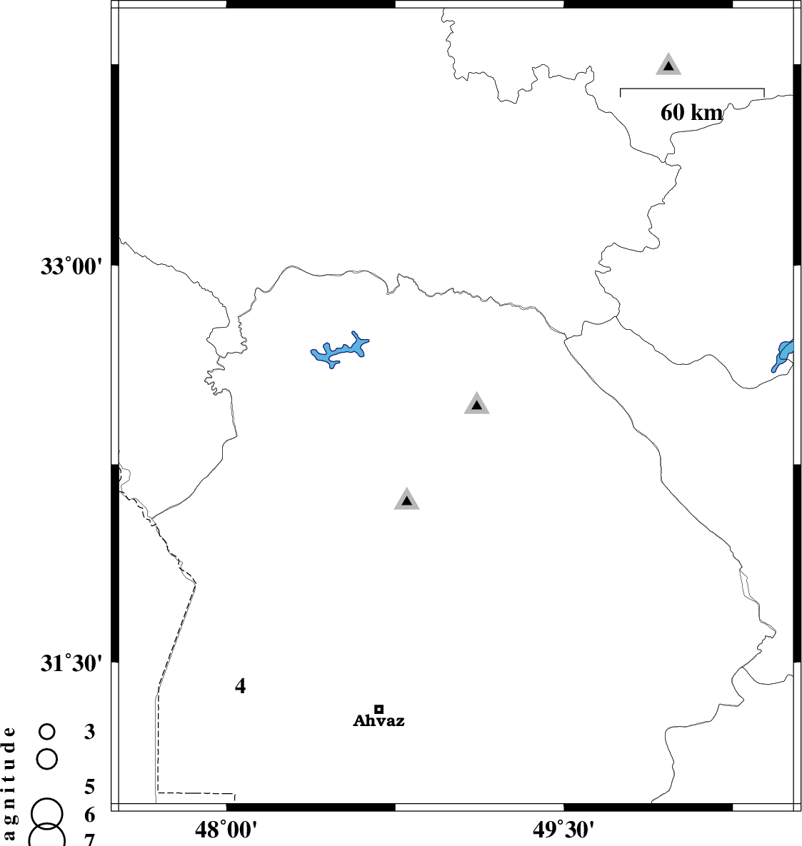 2011/10/22 | 11:33:52.2 | 15:03:52.2 | 31.6 | 50.05 | 14 | ML:2.7 | Khoozestan Province, 17 km East of Bagh Malek |