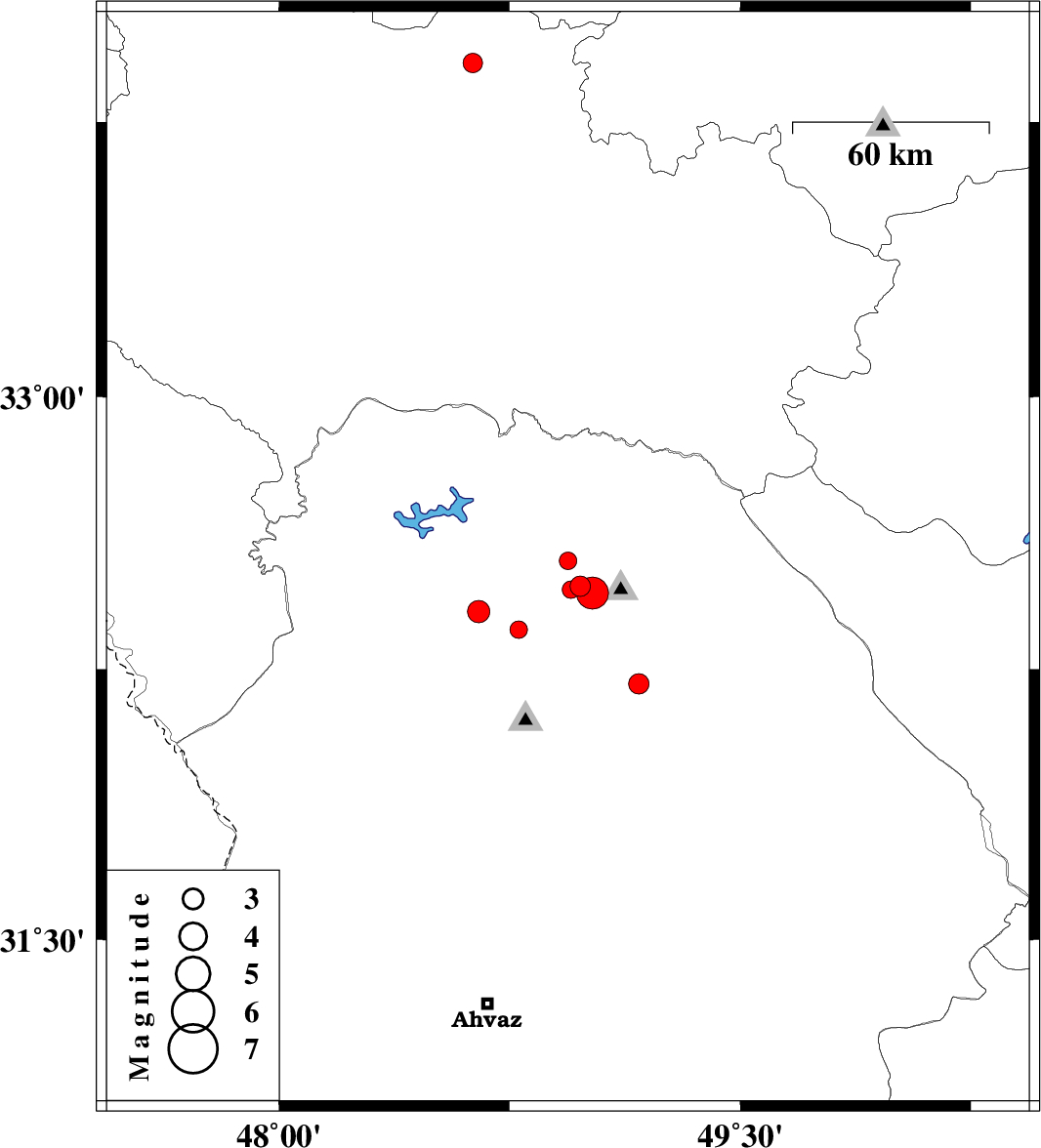 2011/10/30 | 01:12:06.8 | 04:42:06.8 | 32.48 | 48.98 | 15 | ML:2.9 | Khoozestan Province, 16 km West of Lali | ||