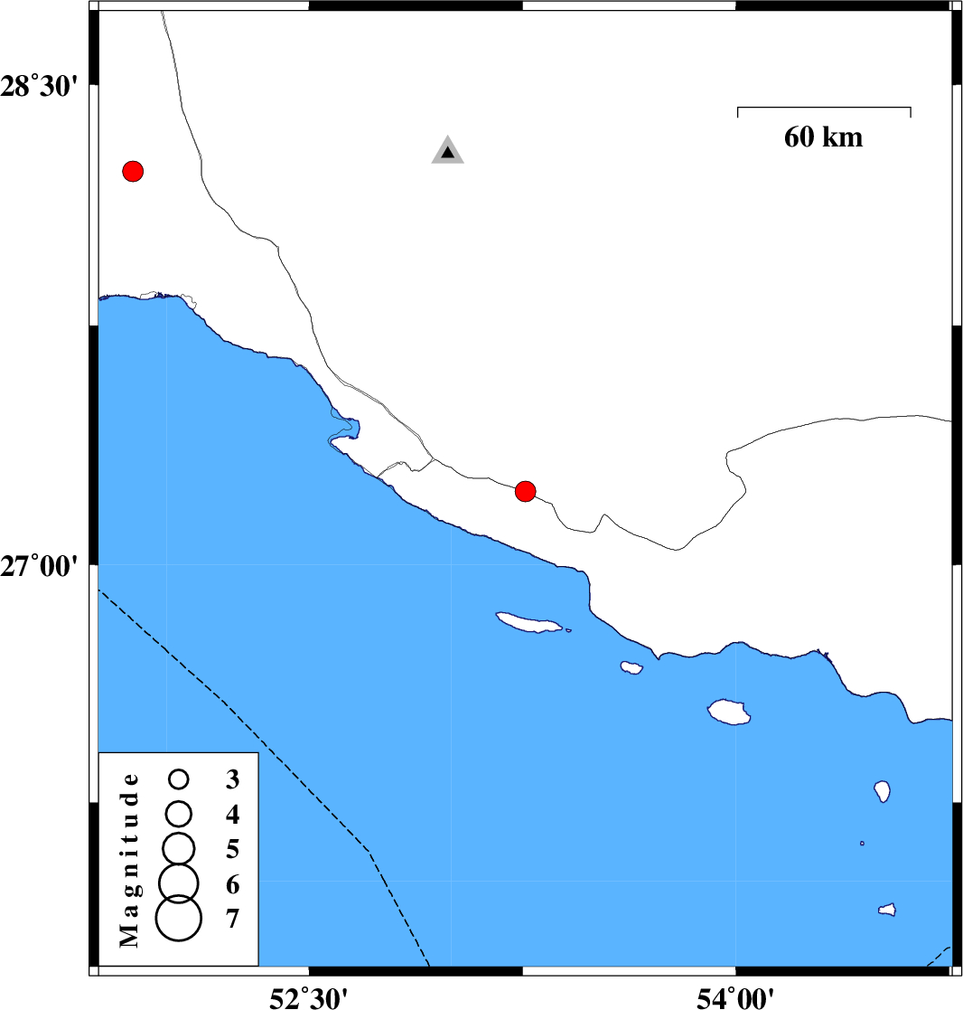 2011/11/15 | 06:52:31.1 | 10:22:31.1 | 28.23 | 51.88 | 14 | ML:3.2 | Bushehr Province, 48 km North-West of Bandar-e kangan |