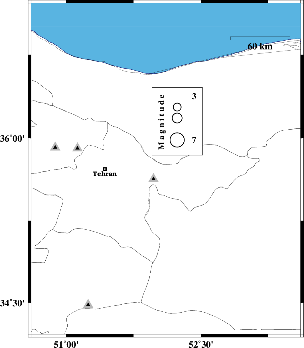 2011/12/01 | 07:48:09.8 | 11:18:09.8 | 35.19 | 52.05 | 16 | ML:3.6 | Semnan Province, 26 km West of Garmsar | ||