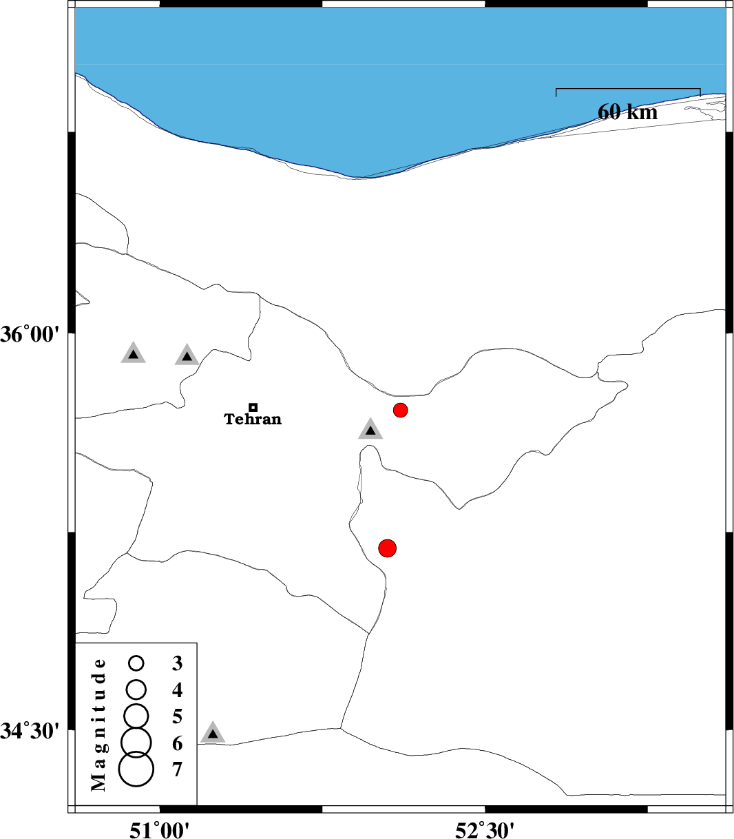 2011/12/01 | 07:48:09.8 | 11:18:09.8 | 35.19 | 52.05 | 16 | ML:3.6 | Semnan Province, 26 km West of Garmsar |