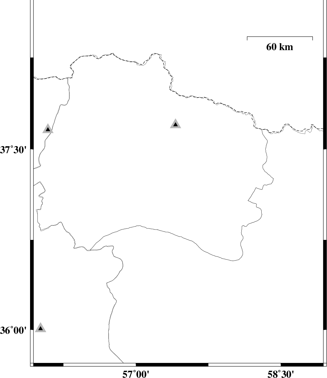 2011/12/08 | 17:06:55.7 | 20:36:55.7 | 37.22 | 57.44 | 34 | ML:2.8 | Khorasan(north) Province, 18 km North of Esfarayen | ||