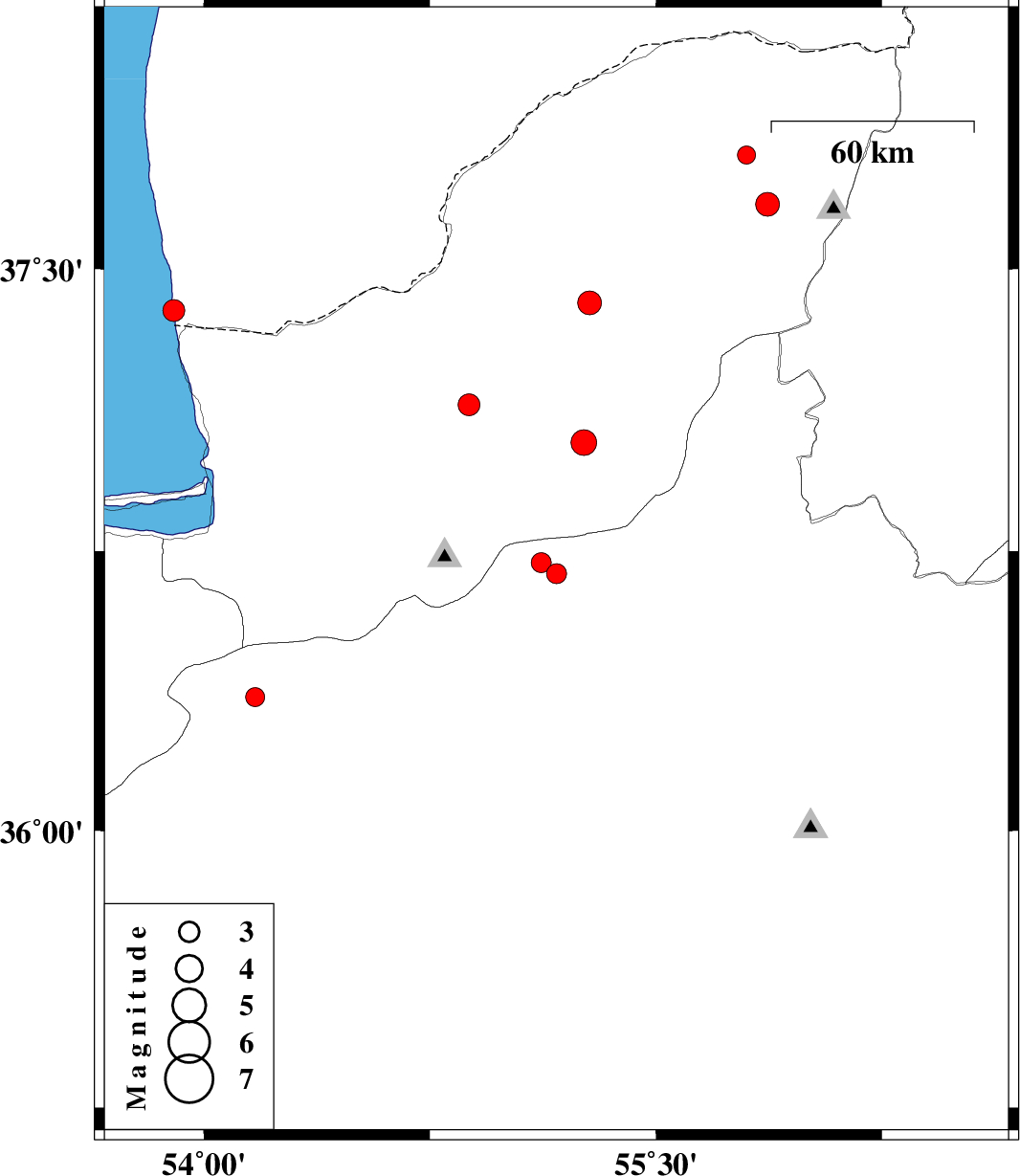 2011/12/01 | 03:56:42.1 | 07:26:42.1 | 37.8 | 55.8 | 6 | ML:2.7 | Golestan Province, 54 km North-East of Kalaleh | ||