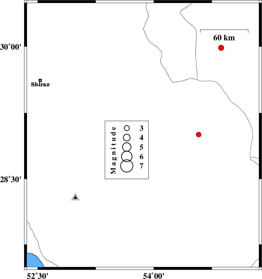 2011/12/17 | 08:10:11.7 | 11:40:11.7 | 28.99 | 53.86 | 6 | ML:3.2 | Fars Province, 21 km East of Fasa | ||