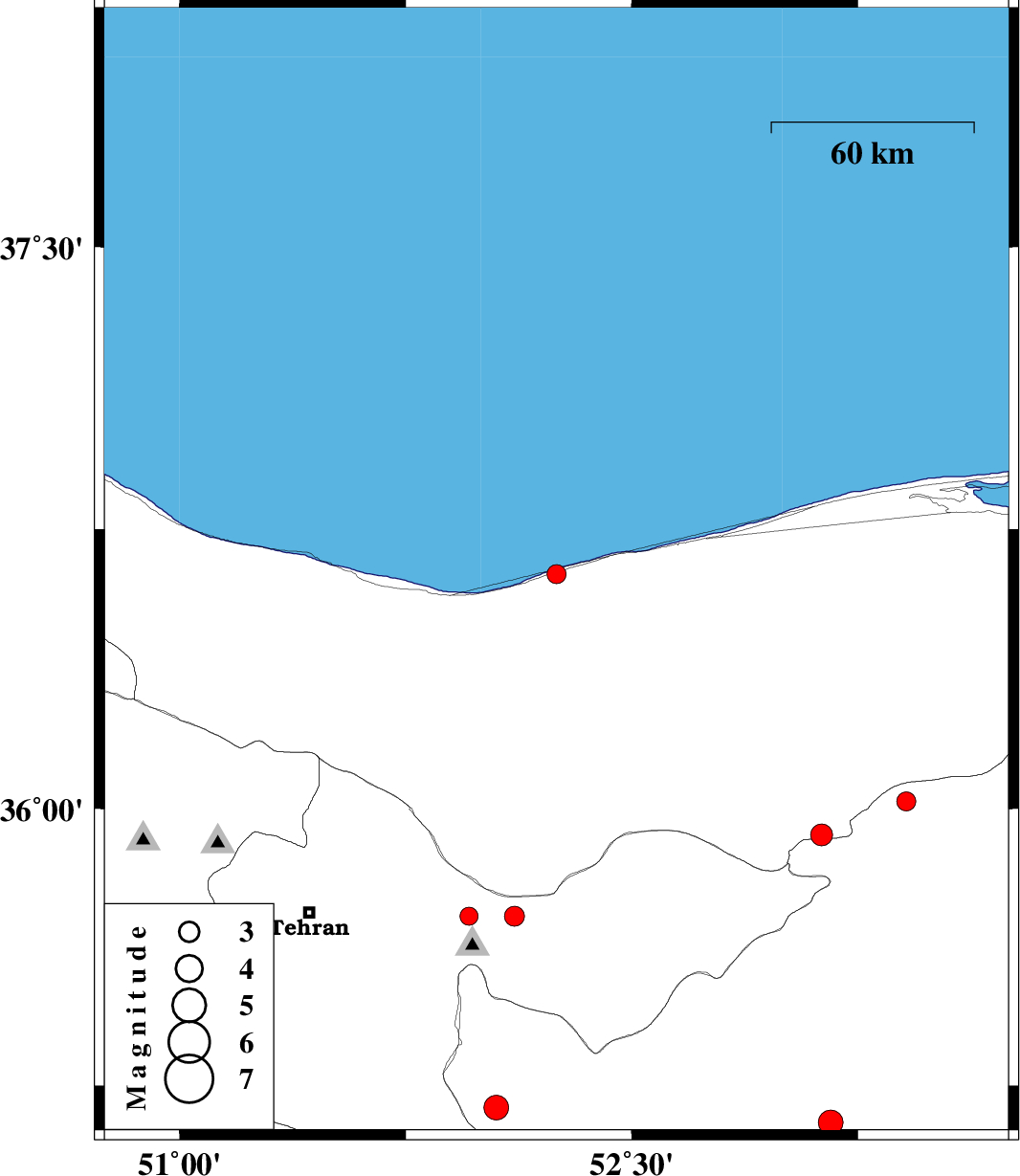 2011/12/01 | 07:48:09.8 | 11:18:09.8 | 35.19 | 52.05 | 16 | ML:3.6 | Semnan Province, 26 km West of Garmsar |