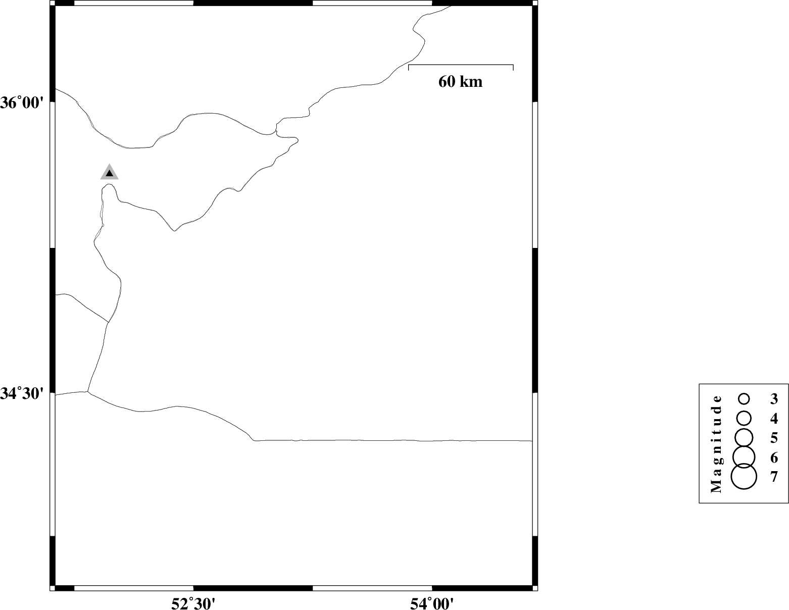 2011/12/25 | 20:24:55.1 | 23:54:55.1 | 34.99 | 53.13 | 18 | ML:3.8 | Semnan Province, 69 km South-West of Semnan | ||