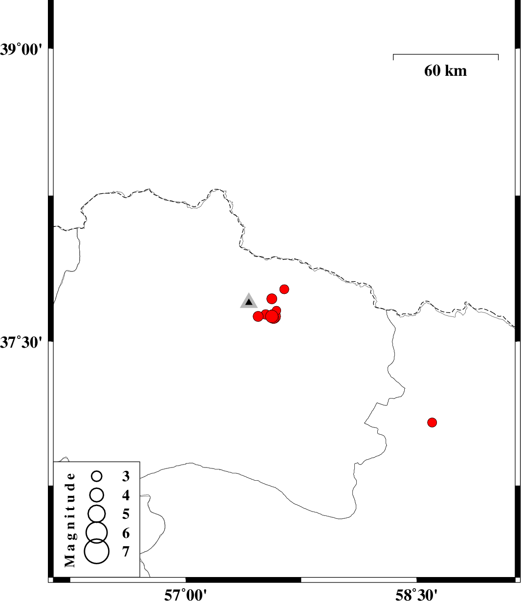 2011/12/26 04:12:00.1 07:42:00.1 37.7257.5617 ML:3 Khorasan(north) Province, 34 km North-East of Bojnurd