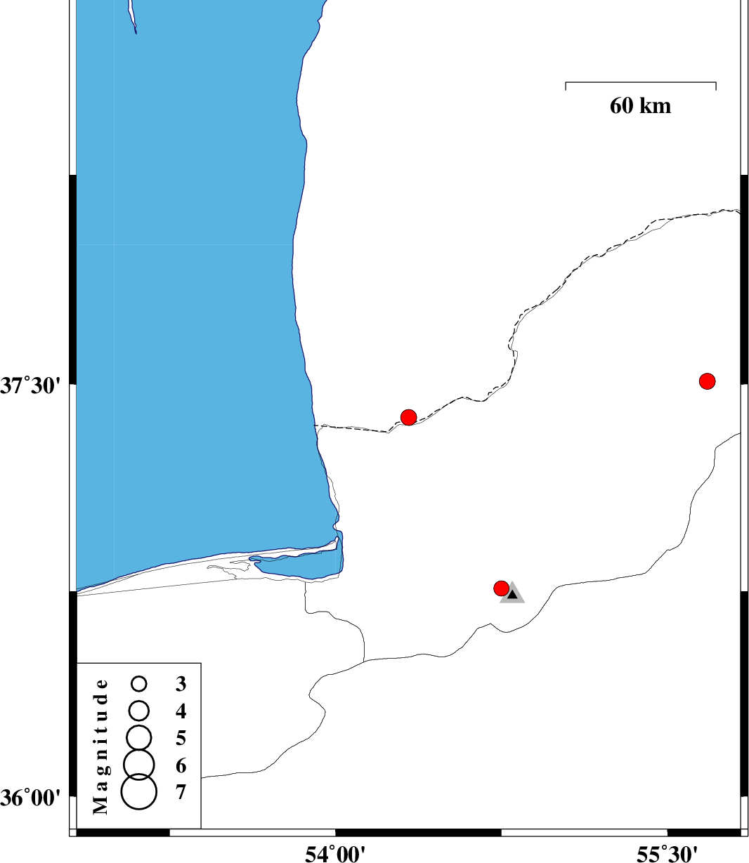 2012/01/03 | 16:47:33.3 | 20:17:33.3 | 37.51 | 55.68 | 15 | ML:3.3 | Golestan Province, 22 km North-East of Kalaleh | ||