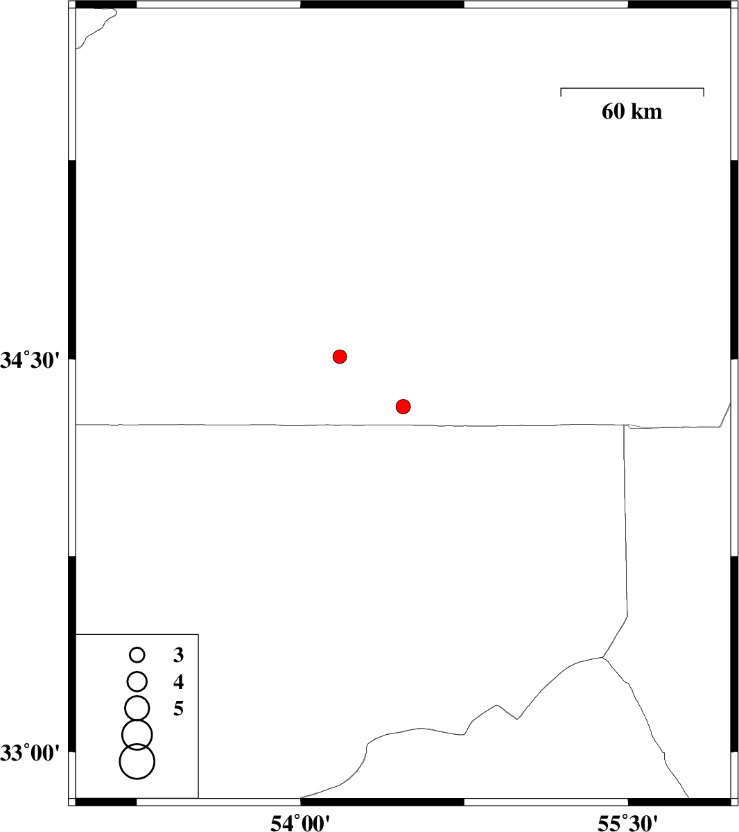 2012/01/09 18:11:59.9 21:41:59.9 34.3254.4715 ML:3 Semnan Province, 205 km South-East of Damghan
