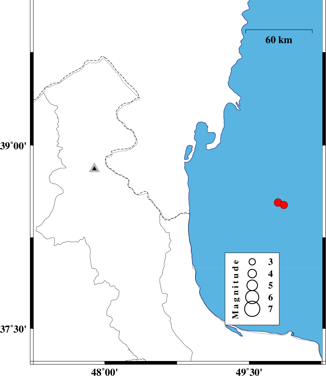 2012/01/03 | 00:56:30.8 | 04:26:30.8 | 38.24 | 47.81 | 14 | ML:3.6 | Ardebil Province, 22 km South-East of Meshgin Shahr |