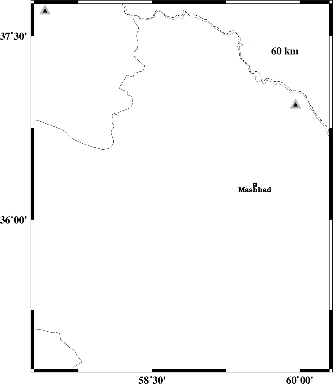 2012/01/19 | 17:42:25.2 | 21:12:25.2 | 36.26 | 58.8 | 14 | ML:3.6 | Khorasan(center) Province, 6 km Neyshabur | ||