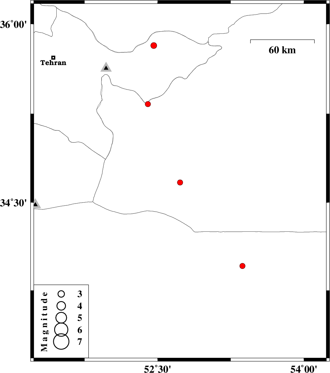 2012/01/19 | 07:00:48.6 | 10:30:48.6 | 35.33 | 52.4 | 28 | ML:2.6 | Semnan Province, 14 km North of Garmsar | ||