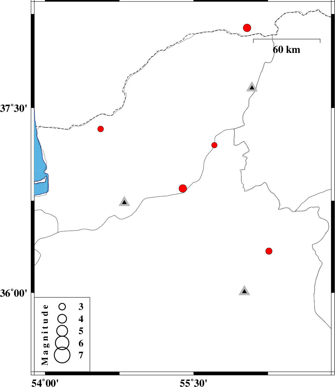 2012/02/01 | 17:33:58.8 | 21:03:58.8 | 37.33 | 54.56 | 18 | ML:2.7 | Golestan Province, 36 km North-East of Aq Qaleh | ||