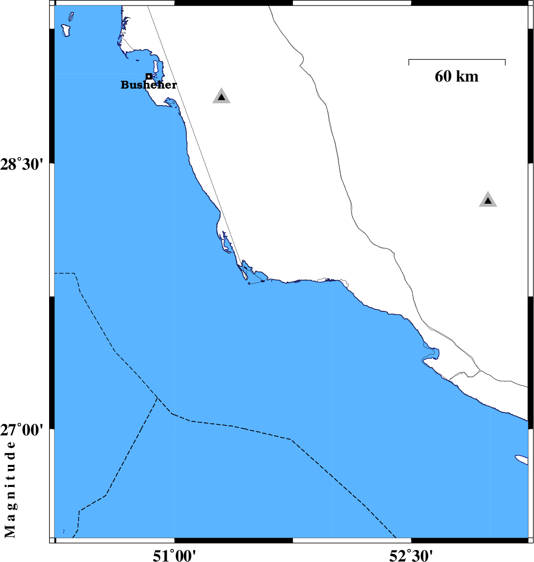 2012/03/06 | 23:35:52.4 | 03:05:52.4 | 27.94 | 52.13 | 41 | ML:3.3 | Bushehr Province, 15 km North of Bandar-e kangan |