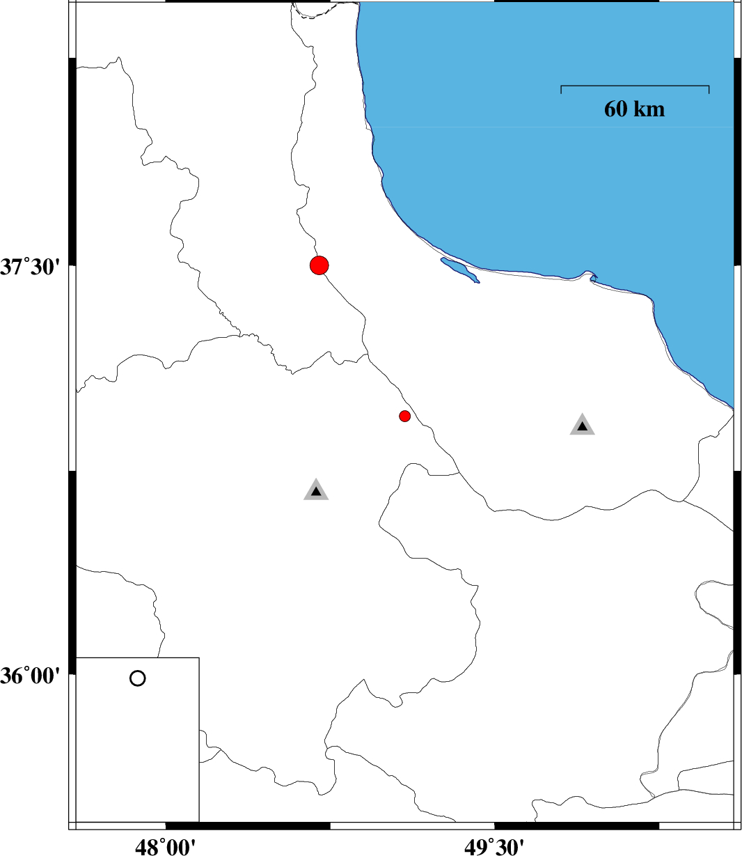 2012/03/11 | 03:28:51.3 | 06:58:51.3 | 37.5 | 48.7 | 14 | ML:3.8 | Gilan Province, 20 km South-East of Khalkhal |