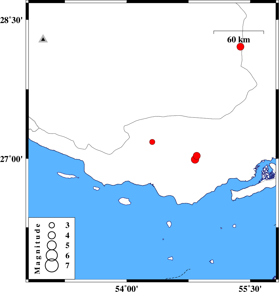 2012/03/12 | 05:09:52.6 | 08:39:52.6 | 26.99 | 54.83 | 15 | ML:4.2 | Hormozgan Province, 52 km North of Bandar-e lengeh | ||