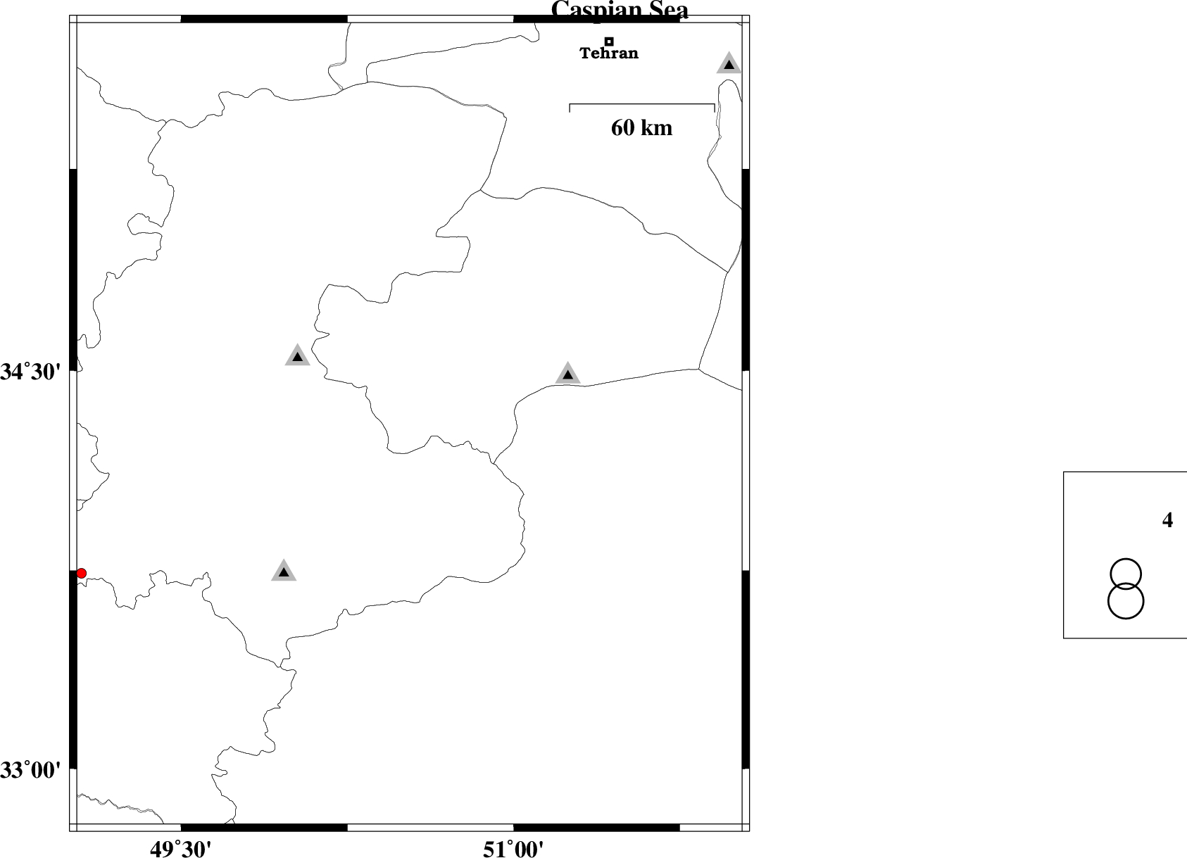 2012/04/08 | 17:36:36.3 | 22:06:36.3 | 35.45 | 50.49 | 18 | ML:2 | Markazi Province, 48 km North-East of Saveh | ||