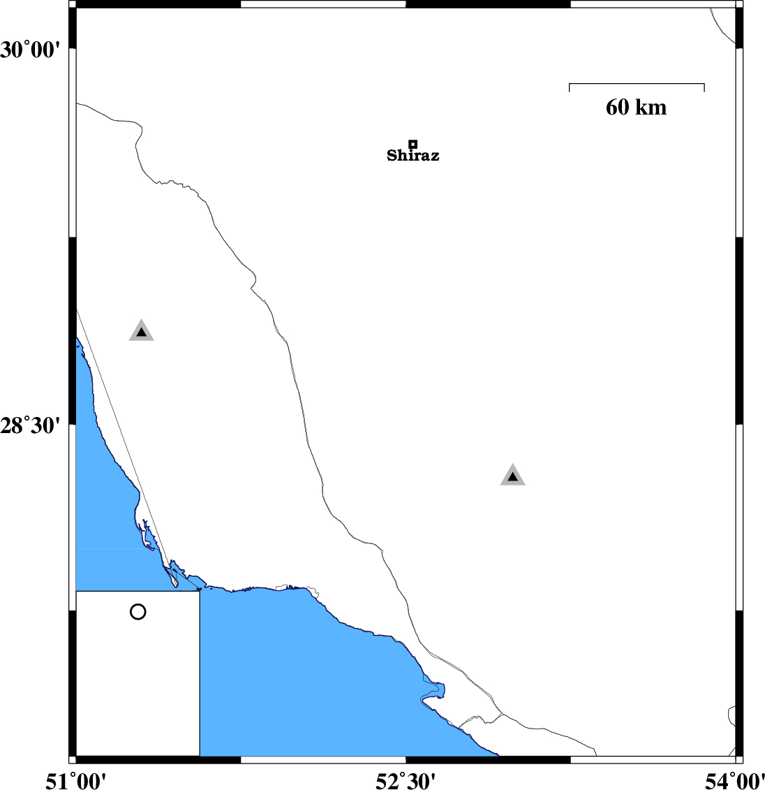Map Region : lat:27.16-30.16 lon:51-54 Map's coordinate is invalid North ** West ** East ** South ** Show Cities Province Center None Province And Township Center Show Foreign Cities Yes No Show Fault Mechanism Yes No Show Province Boundaries Yes No Show Stations No Yes With Name Yes Without Name Map Title Invalid Title Get Ascii Data in Format : List Seisan GSE2.0 Prel. Rep.DateTime(UTC)Time(Local)Lat.Lon.DepthMag.RegionWaveform 2012/04/09 08:39:21.2 13:09:21.2 28.6652.525 ML:2.6 Fars Province, 21 km South of Firuz Abad