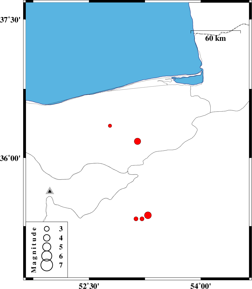 2012/04/30 | 01:33:23.3 | 06:03:23.3 | 35.37 | 53.29 | 29 | ML:4.2 | Semnan Province, 24 km South-West of Semnan | ||