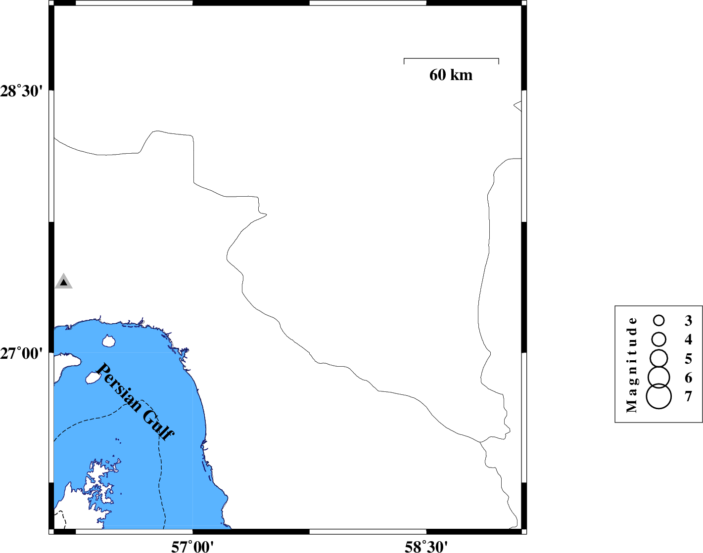 2012/05/02 | 08:07:36.0 | 12:37:36.0 | 27.86 | 56.74 | 14 | ML:2.8 | Hormozgan Province, 69 km North-West of Dehbarez | ||