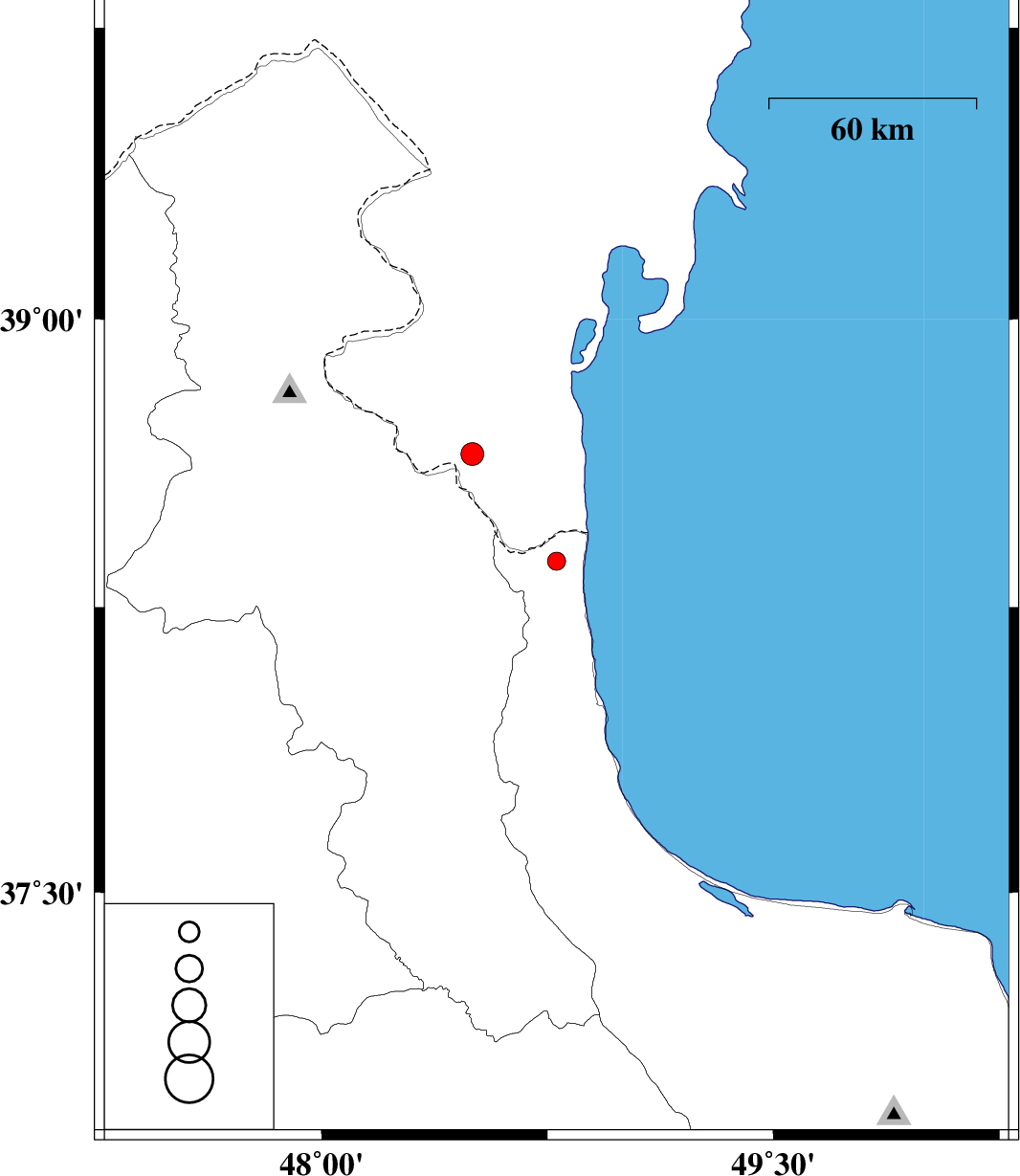 Map Region : lat:36.87-39.87 lon:47.28-50.28 Map's coordinate is invalid North ** West ** East ** South ** Show Cities Province Center None Province And Township Center Show Foreign Cities Yes No Show Fault Mechanism Yes No Show Province Boundaries Yes No Show Stations No Yes With Name Yes Without Name Map Title Invalid Title Get Ascii Data in Format : List Seisan GSE2.0 Prel. Rep.DateTime(UTC)Time(Local)Lat.Lon.DepthMag.RegionWaveform 2012/06/16 13:07:33.9 17:37:33.9 38.3748.7817 ML:2.7 Gilan Province, 9 km Astara 2012/06/10 22:30:20.8 03:00:20.8 38.6548.514 ML:3.4 Azerbaijan, 24 km North of Namin