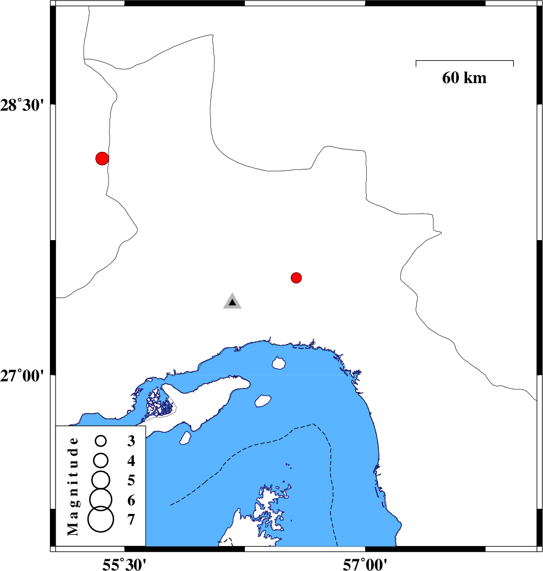 2012/08/31 | 09:30:46.1 | 14:00:46.1 | 27.54 | 56.57 | 14 | ML:3 | Hormozgan Province, 49 km North-East of Bandar-e abbas | ||