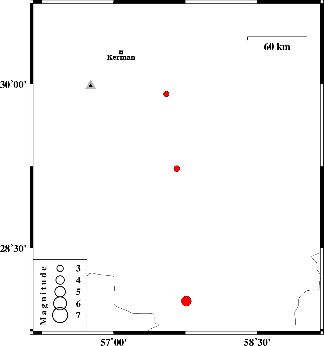 2012/09/03 | 20:01:52.0 | 00:31:52.0 | 29.91 | 57.55 | 14 | ML:2.7 | Kerman Province, 62 km South-East of Kerman | ||