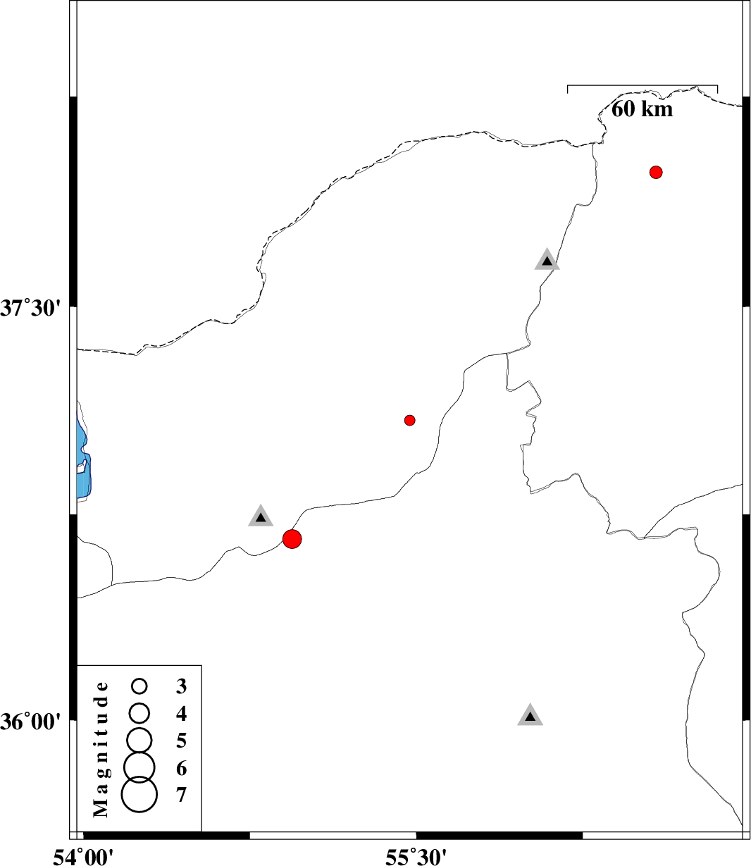 2012/10/01 | 19:23:29.1 | 22:53:29.1 | 36.66 | 54.94 | 15 | ML:3.8 | Semnan Province, 27 km North of Shahrud | ||