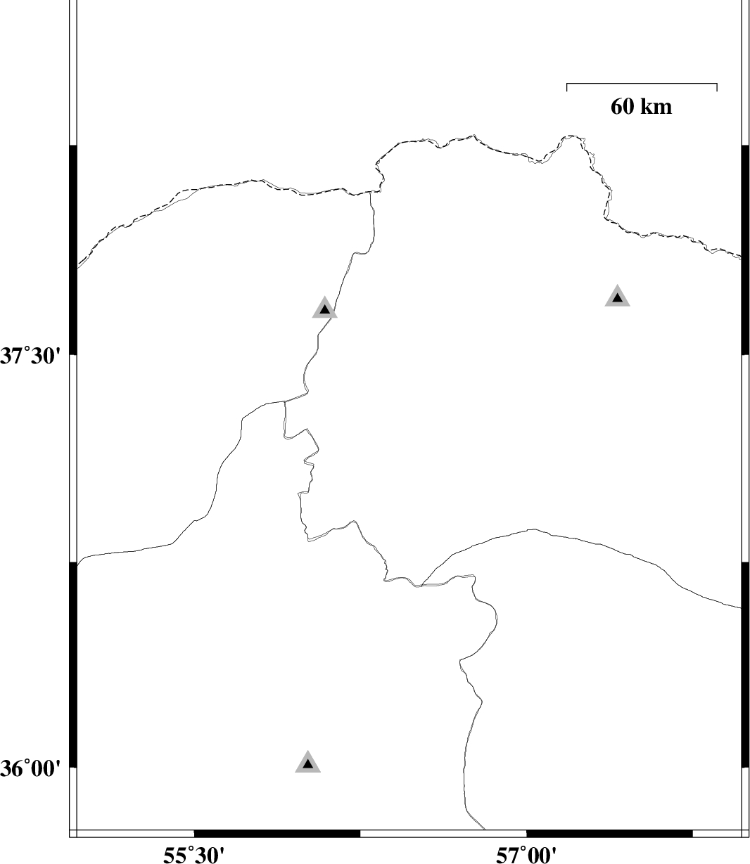 2012/10/23 | 05:16:07.8 | 08:46:07.8 | 36.79 | 56.58 | 15 | ML:2 | Khorasan(north) Province, 25 km South-East of Jajarm |