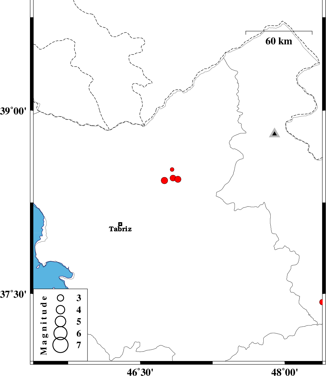 2013/01/05 | 00:39:37.3 | 04:09:37.3 | 38.52 | 46.83 | 14 | ML:1.9 | Azarbaijan Sharghi Province, 23 km West of Ahar | ||