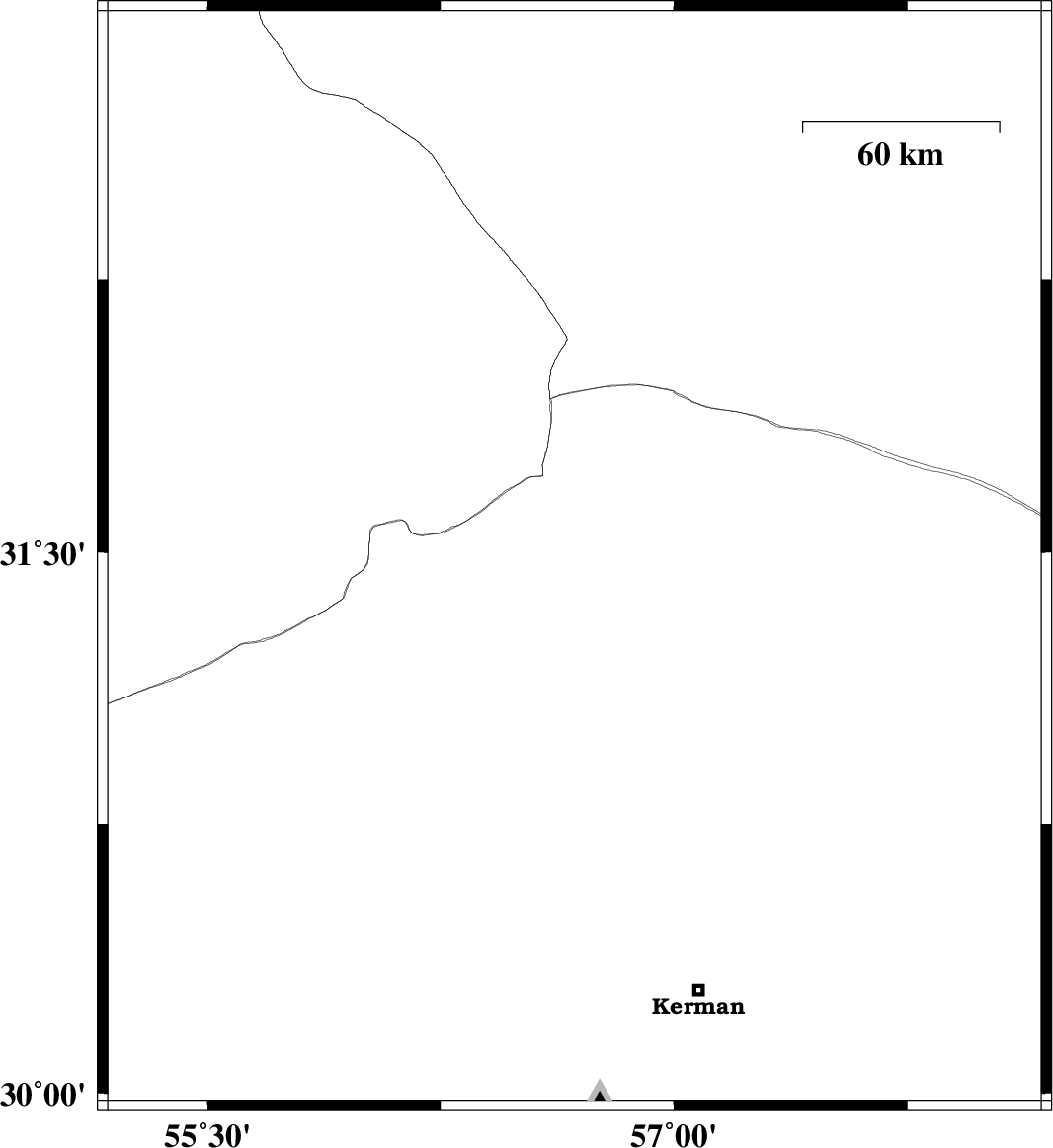 2013/02/18 | 00:56:09.4 | 04:26:09.4 | 31.48 | 56.68 | 35 | ML:2.6 | Kerman Province, 27 km North-West of Ravar | ||