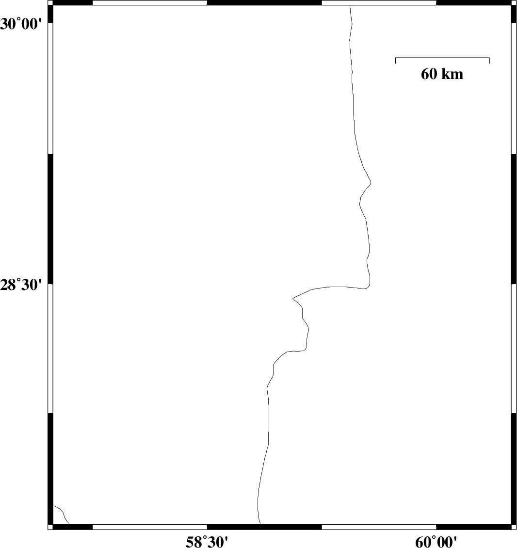2013/06/01 | 02:02:27.7 | 06:32:27.7 | 28.95 | 58.35 | 14 | ML:2.7 | Kerman Province, 18 km South of Bam |