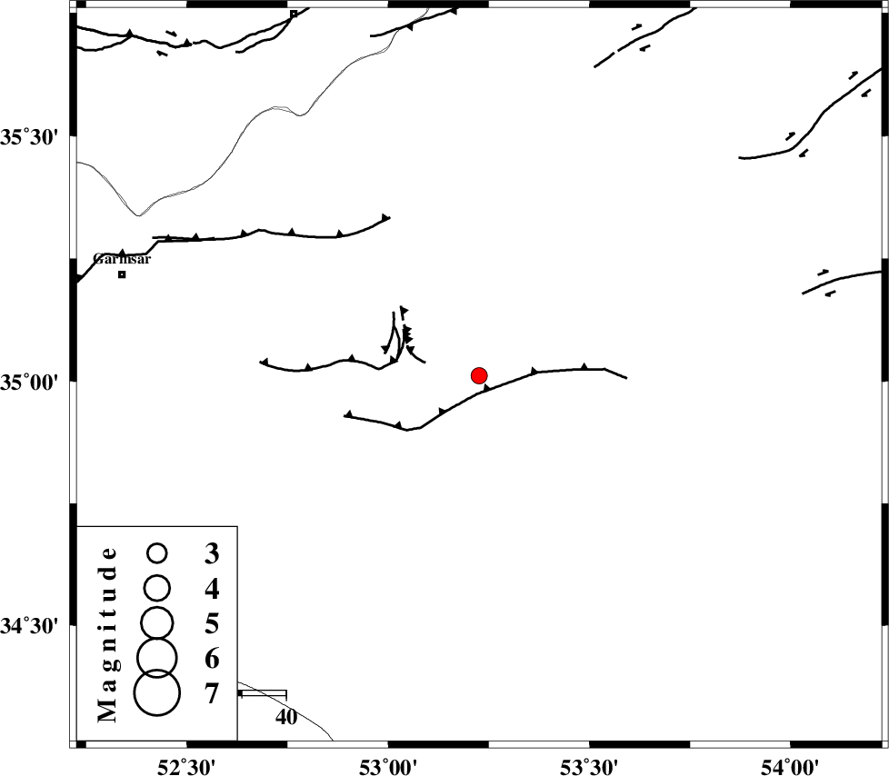 | KUH_E_GUGERD_F (Length: 73 km) , Distance to epicenter: 4 km | |