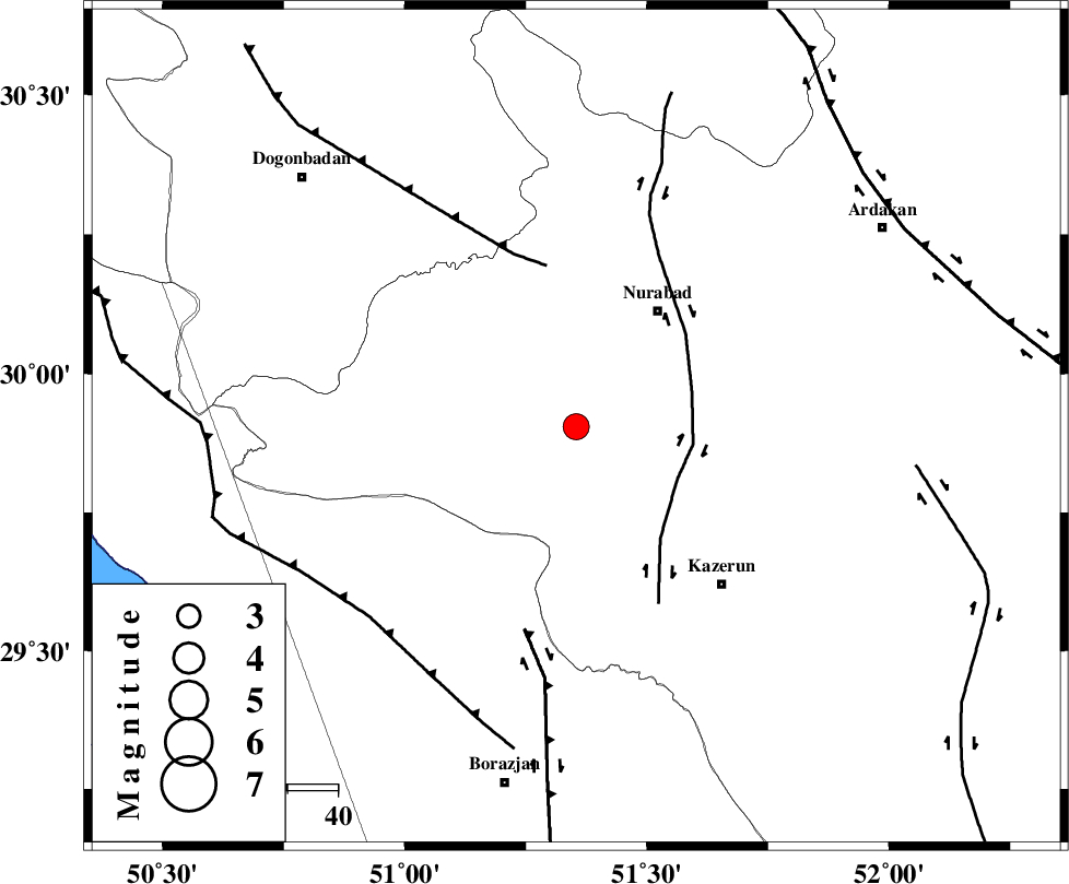 | KAZERUN_F (Length: 96 km) , Distance to epicenter: 23 km | |