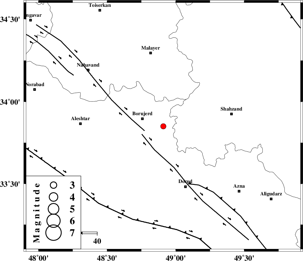 | MAIN_ZAGROS_R_F (Length: 1106 km) , Distance to epicenter: 42 km | |