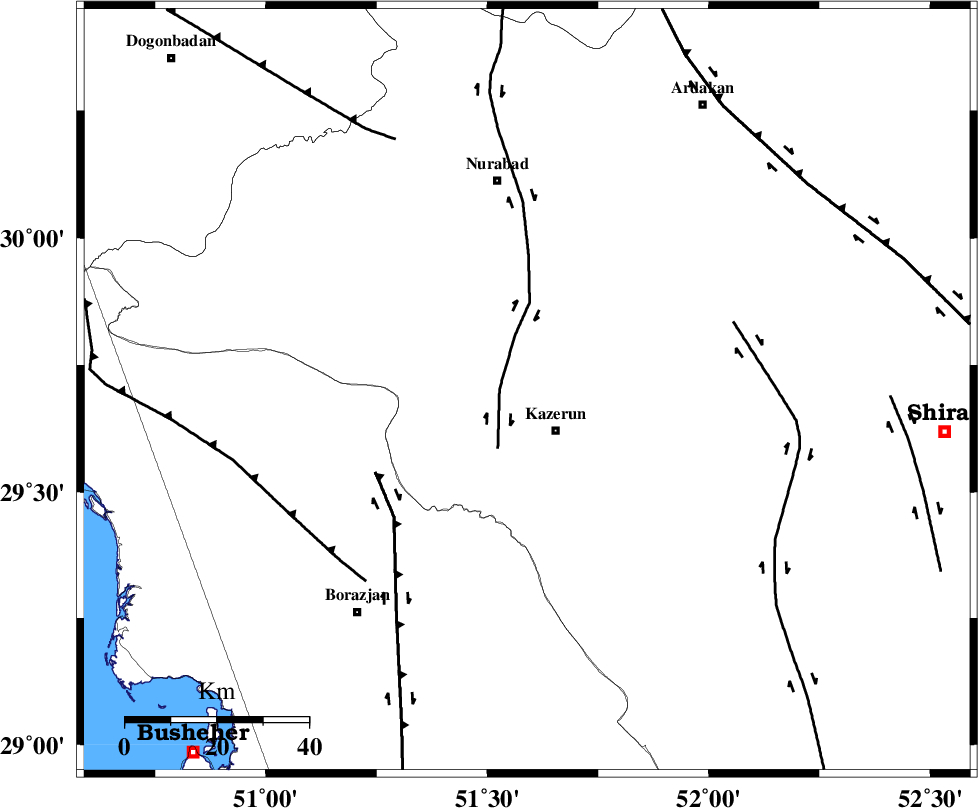 | KAZERUN_F (Length: 96 km) , Distance to epicenter: 6 km | |