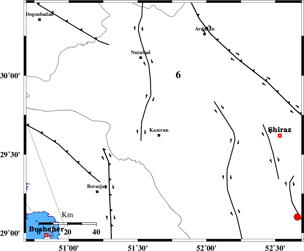 | KAZERUN_F (Length: 96 km) , Distance to epicenter: 16 km | |