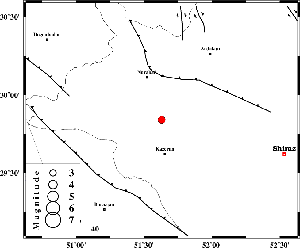 | KAZERUN_F (Length: 96 km) , Distance to epicenter: 5 km | |