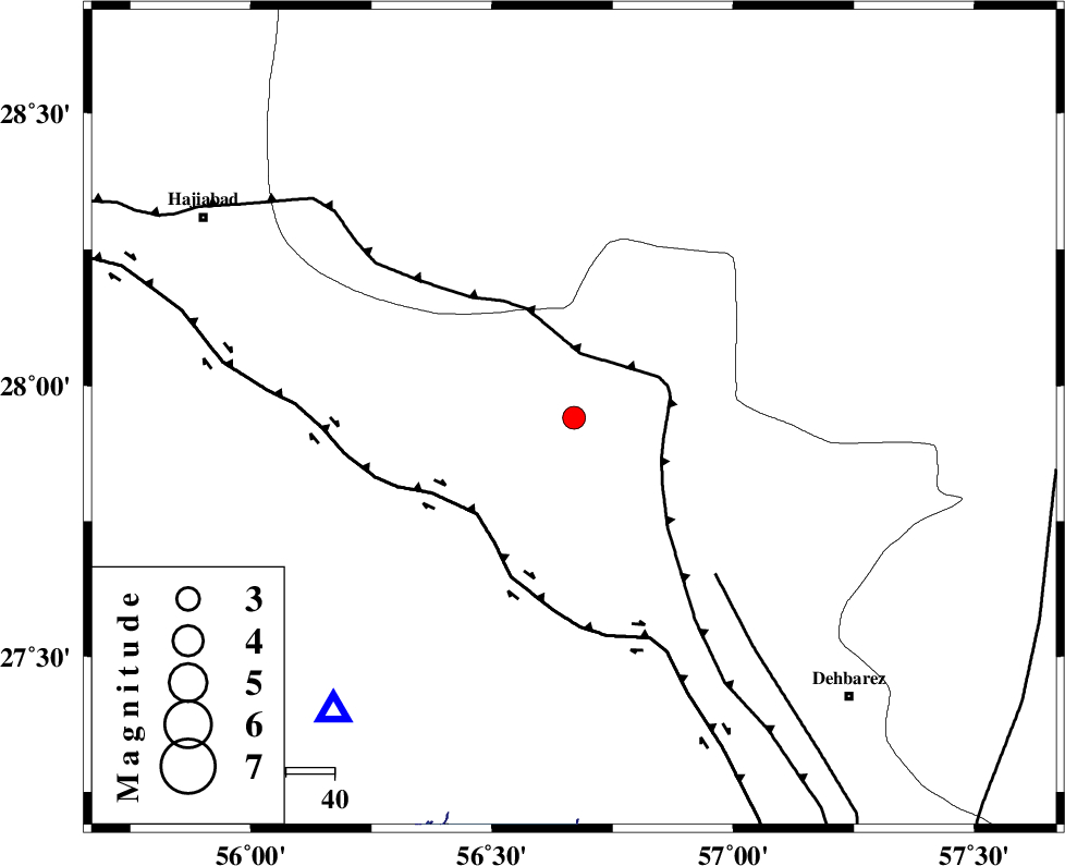 | ZENDAN_MINAB_F_Z1 (Length: 183 km) , Distance to epicenter: 43 km | |