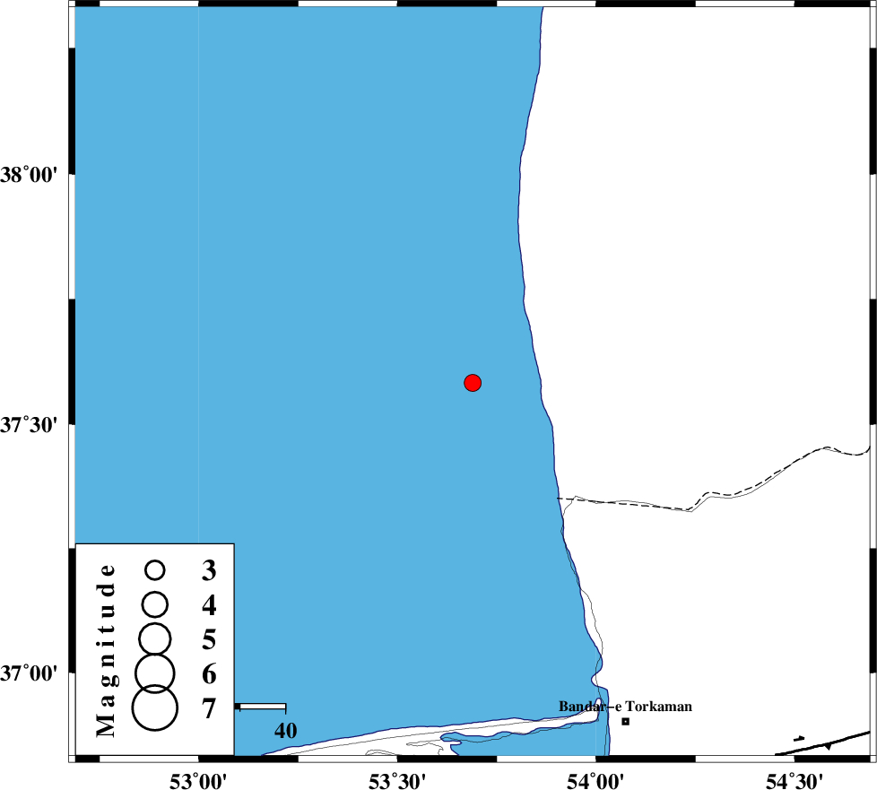 | KHAZAR_F (Length: 523 km) , Distance to epicenter: 96 km | |