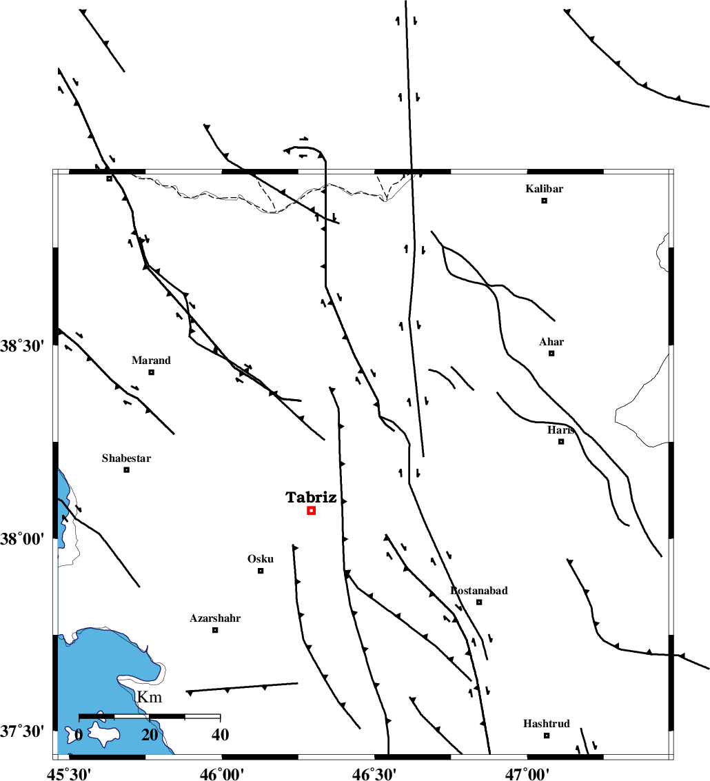 | N_TABRIZ_F2 (Length: 52 km) , Distance to epicenter: 43 km | |
