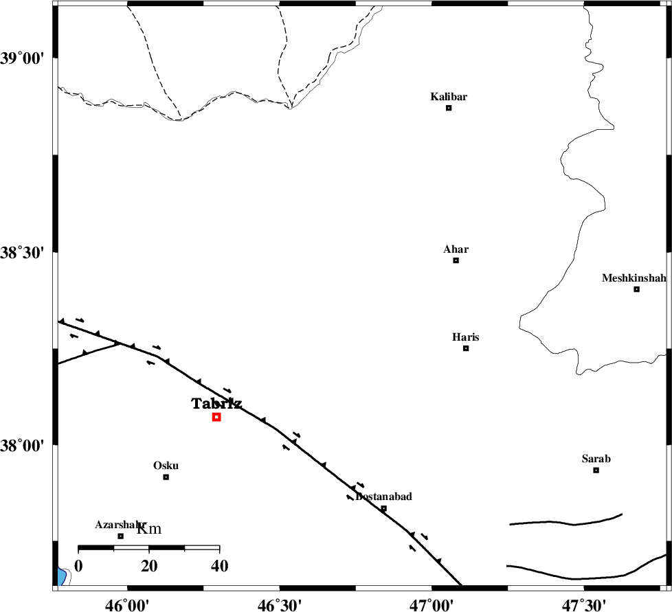 | N_TABRIZ_F1 (Length: 222 km) , Distance to epicenter: 45 km | |